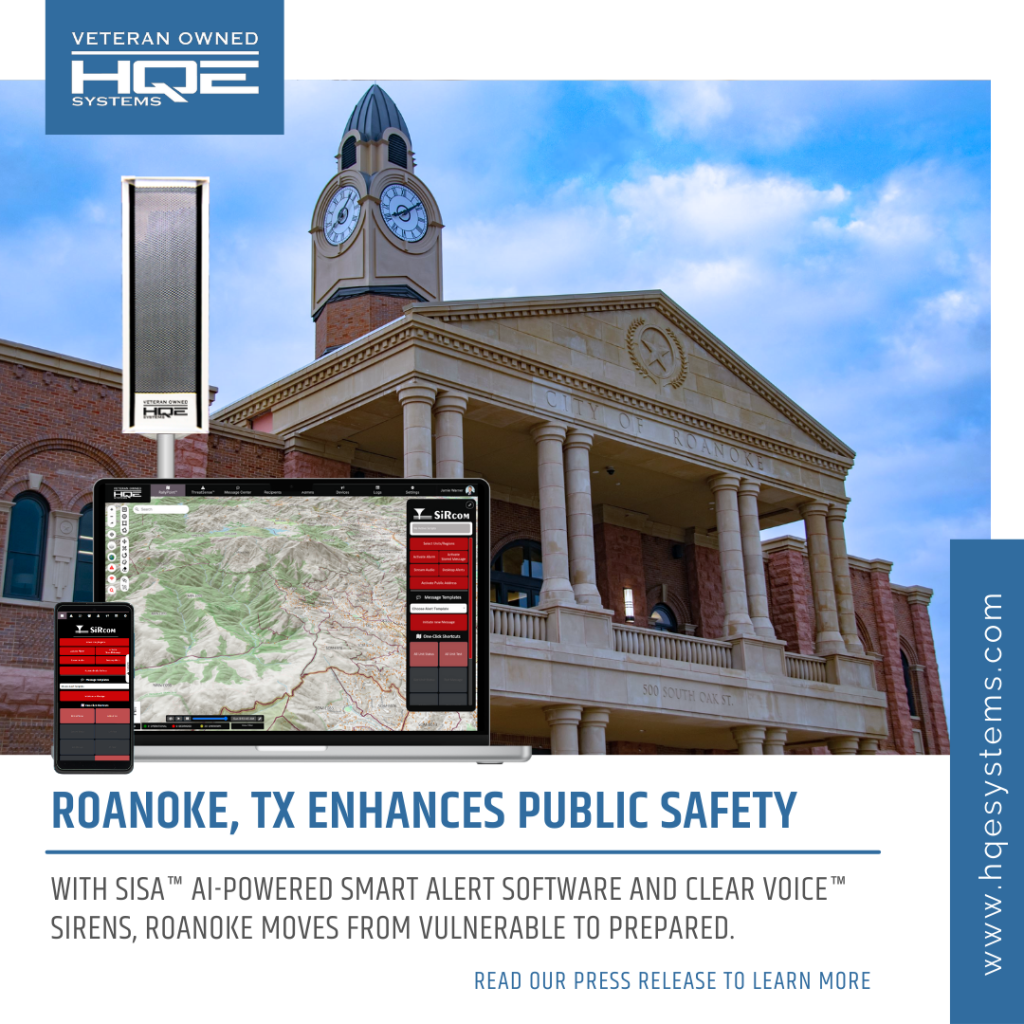 Press Release: City of Roanoke, TX Enhances Emergency Alerting with HQE Systems’ LS120 Intelligent Voice Outdoor Warning Siren Installation